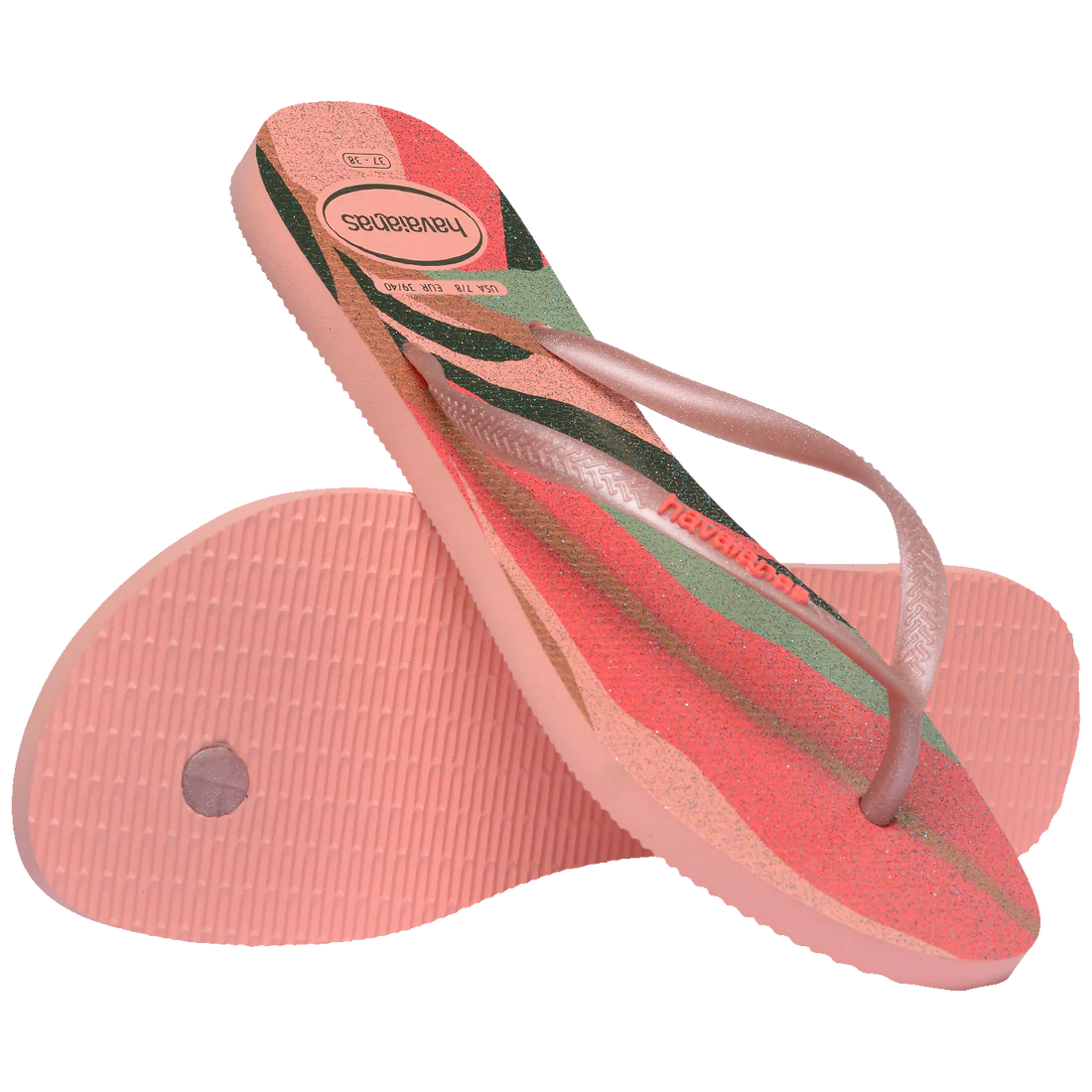 Inspirada nas cores das paletas de maquiagem, a Havaianas Slim Palette Glow leva o charme de uma boa make direto para os seus pés. Feita em cores lindas, tiras finas e com muito glitter holográfico!