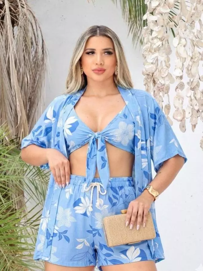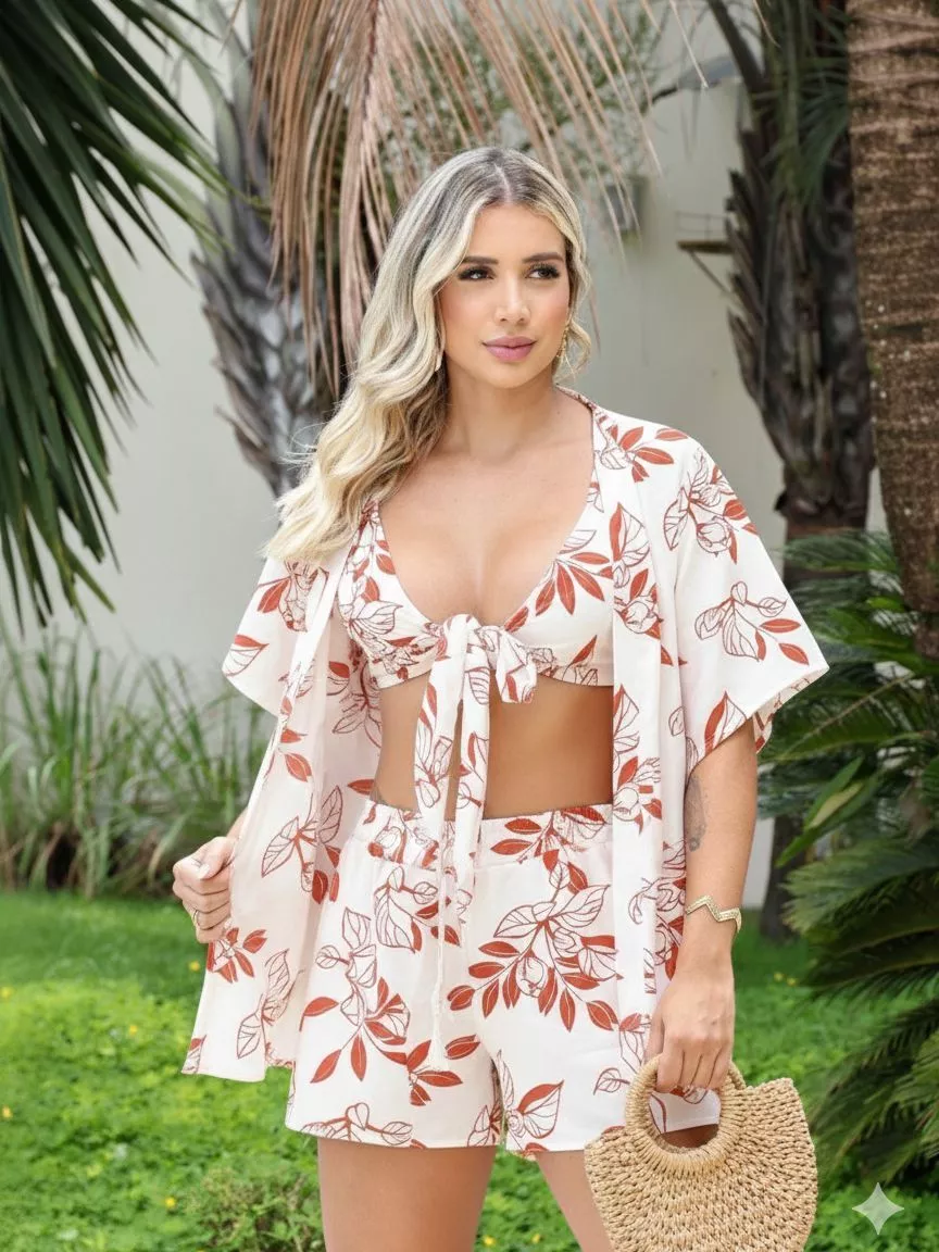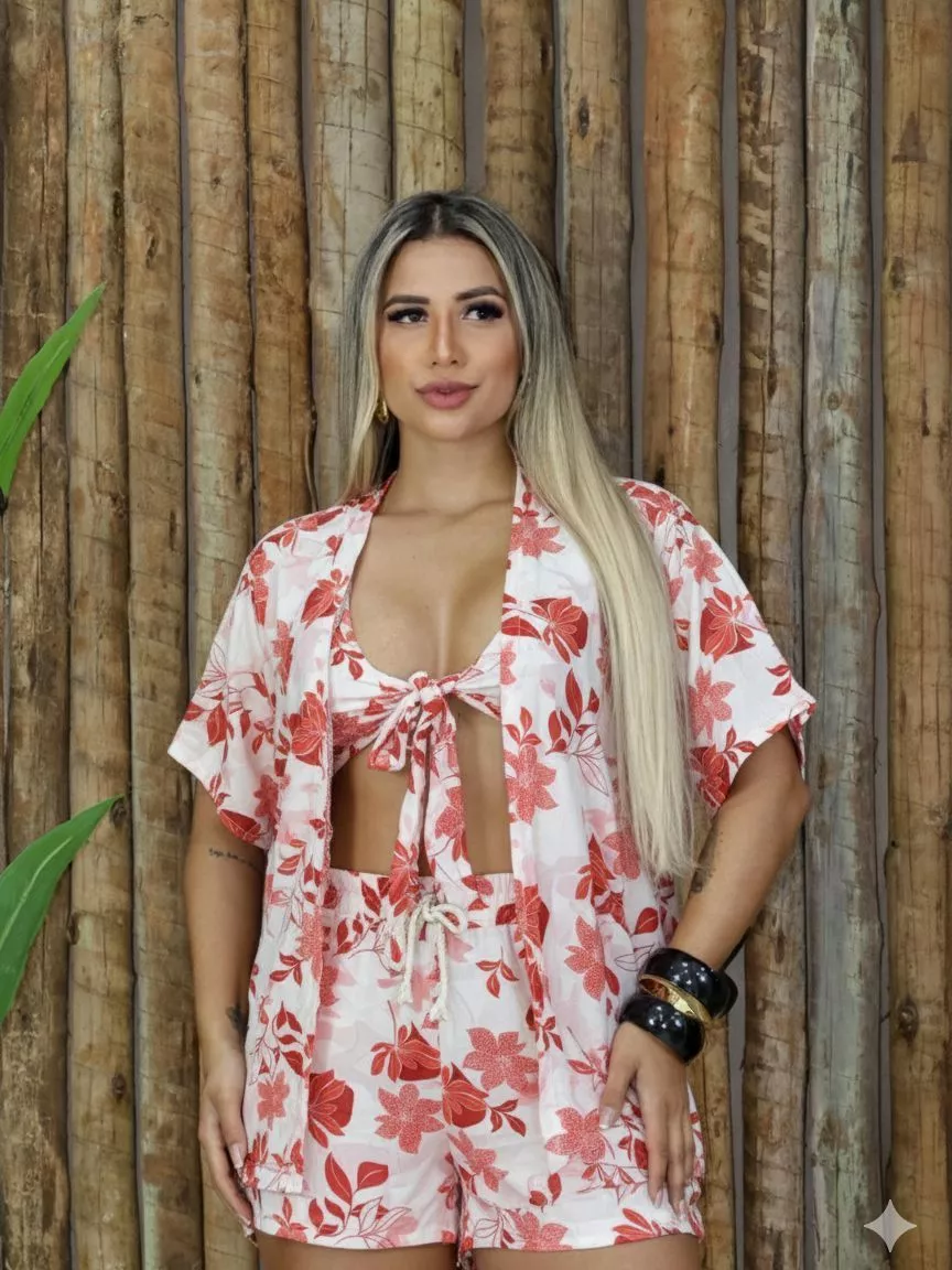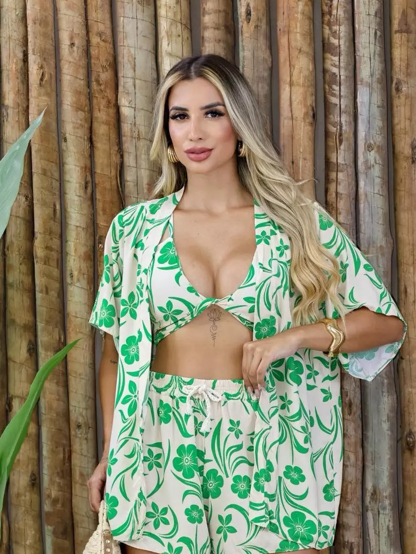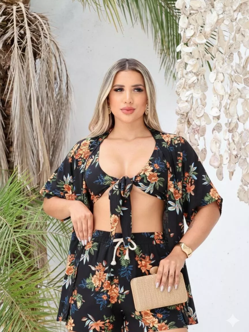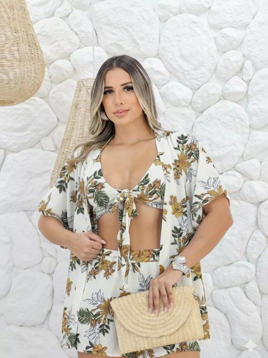 Conjunto Composto por 3 peças 1 Kimono, 1 Conjunto e 1 Top