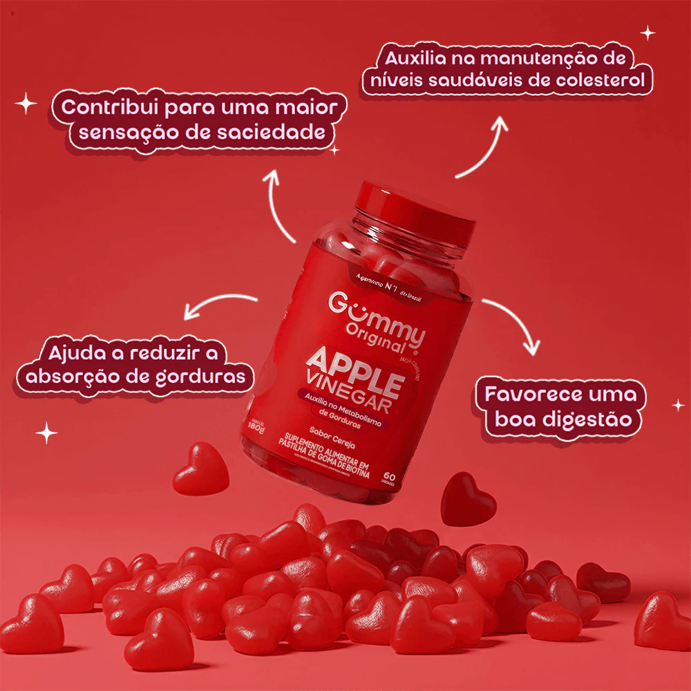 Ao acordar, continue seu ritual com Gummy Original Vinagre de Maçã. Transformamos os benefícios milenares do vinagre de maçã em gomas saborosas. Elas auxiliam na sensação de saciedade, te ajudando a fazer escolhas mais conscientes, e contribuem para a manutenção de níveis saudáveis de colesterol. Tudo isso sem o sabor forte ou a acidez do vinagre tradicional.