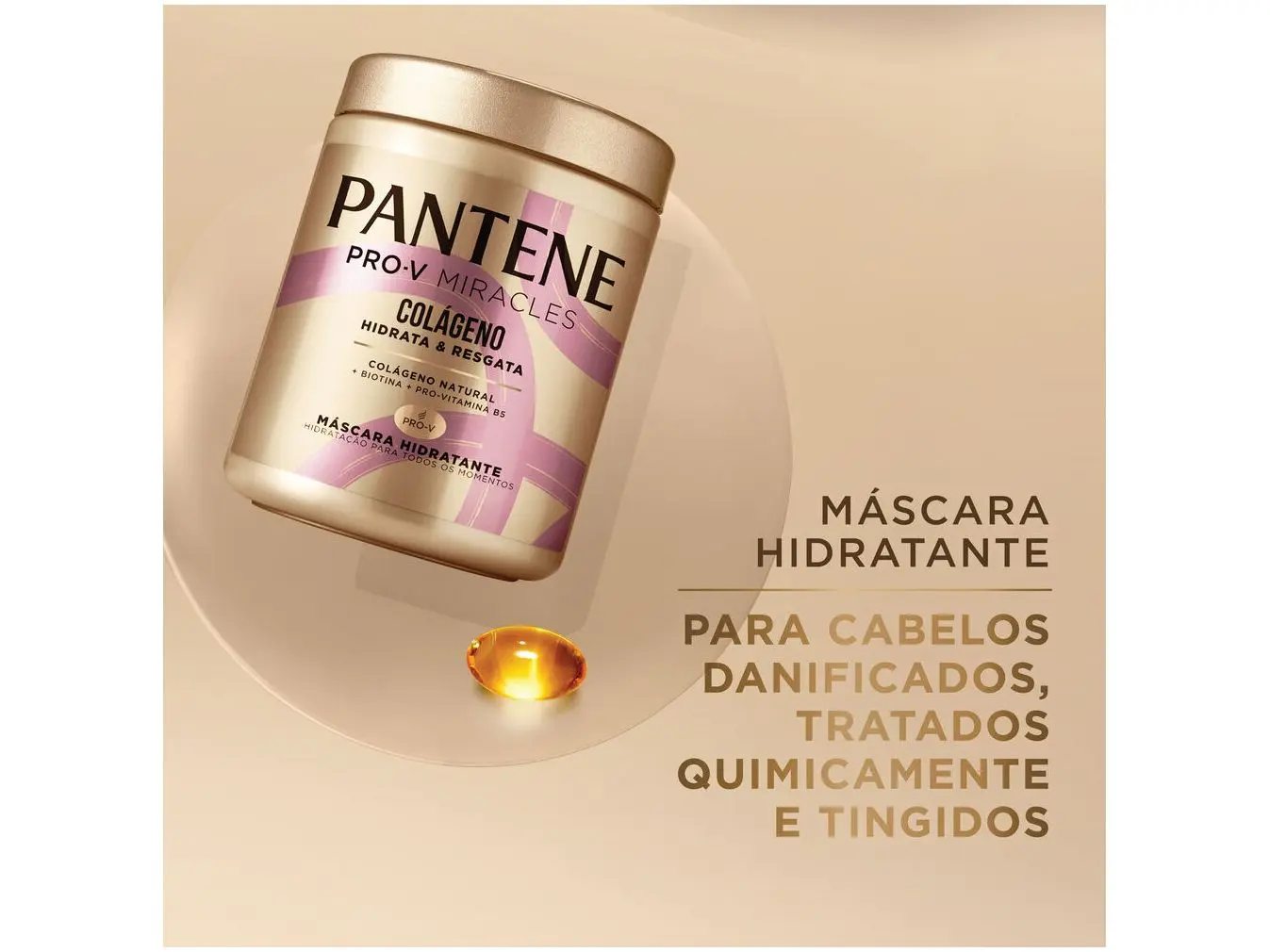 A linha Pantene Pro-V Miracles faz parte de uma variedade de produtos exclusivos que atendem a diferentes situações de danos em uma experiência geral de luxo que inclui uma nova fragrância frutal, cores e textura, que você e seu cabelo quimicamente transformado vão adorar! A Máscara de Tratamento Capilar Colágeno Hidrata e Resgata 550ml é o produto perfeito para a etapa que não pode faltar na rotina brasileira: a hidratação. Indicada para cabelos danificados, é o complemento ideal na rotina de lavagem graças à sua tecnologia que repara as zonas danificadas. Sua fórmula Pro-V Miracles com Colágeno recupera a hidratação do seu cabelo rapidamente, deixando-o brilhante e macio. Produto 100% natural, com Biotina e Pro-Vitamina B5.