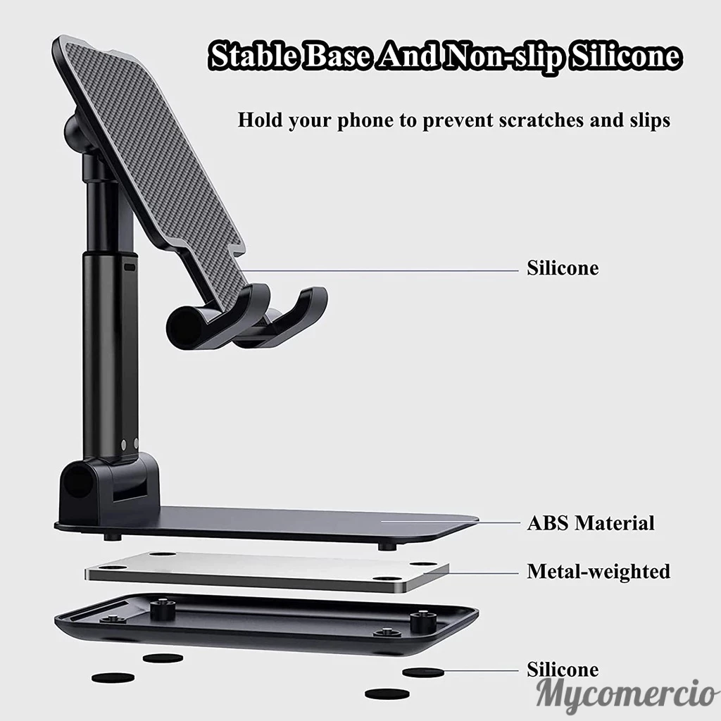 -➥ Almofadas de silicone na parte de baixo, que serve para proteger a mesa de arranhões e fixar o suporte;